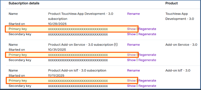 Getting your subscriptions keys per product