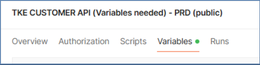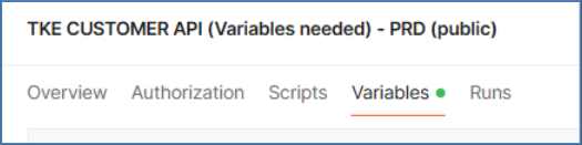 Access the collection provided by TKE (Link), go to the Variables tab, and fill in the following fields: