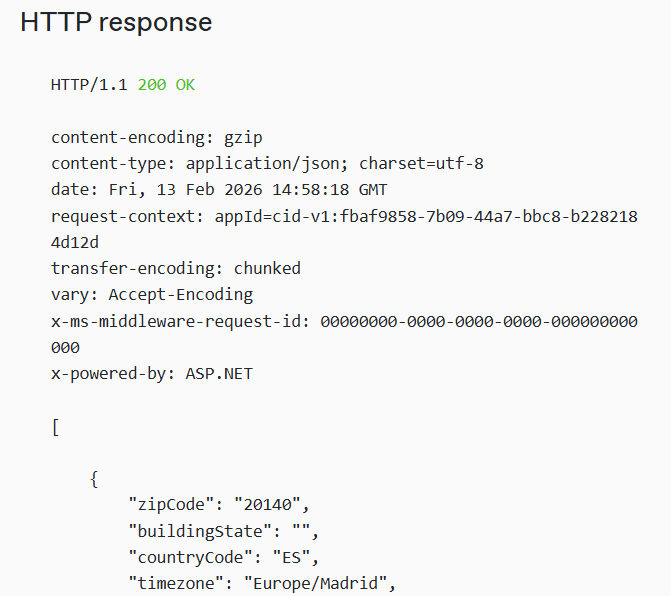6. You will see the results at the bottom of the page and find the equipment portfolio in a Json format